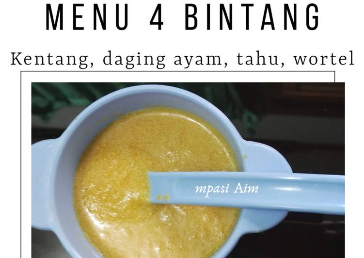 Di bawah ini ada beberapa tips dan trik praktis yang dapat diterapkan untuk mengolah mpasi 6m+ menu 4 bintang yang siap dikreasikan. Anda bisa menyiapkan Mpasi 6m+ Menu 4 bintang menggunakan 5 bahan dan 5 langkah pembuatan. Berikut ini cara dalam menyiapkan hidangannya.