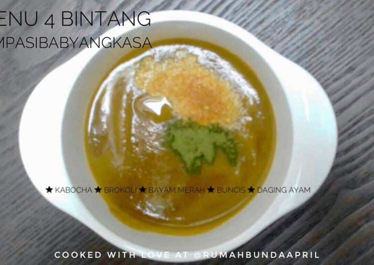 Bagaimana Membuat Mpasi 6m+ menu 4 bintang baby Angkasa : kabocha brokoli bayam merah buncis daging ayam yang Lezat Sekali