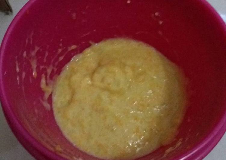 - Haluskan keempat bahan dengan saringan atau blender. Tambahkan kaldu sapi sedikit demi sedikit sampai tekstur bubur menjadi semi kental. Sajikan!.